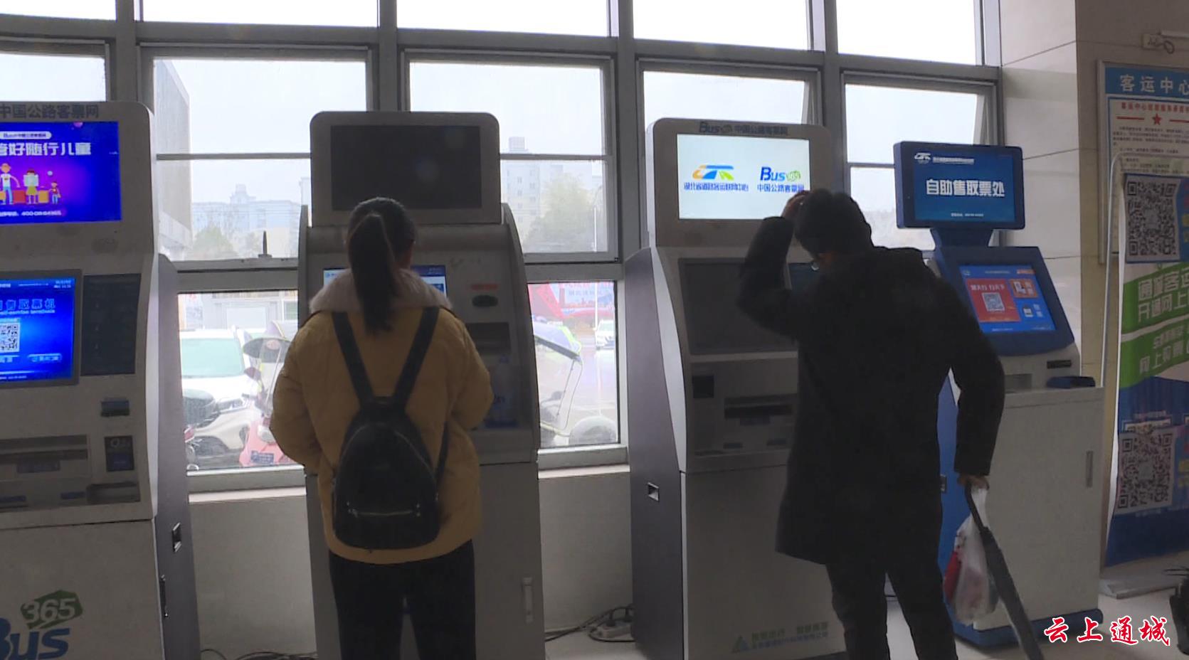 在通城客運(yùn)中心,記者看到,安保人員、售票人員以及各類春運(yùn)服務(wù)人員都已全員到位。行色匆匆的返鄉(xiāng)人通過自助購票和人工售票窗口,有序的購票安檢乘車。